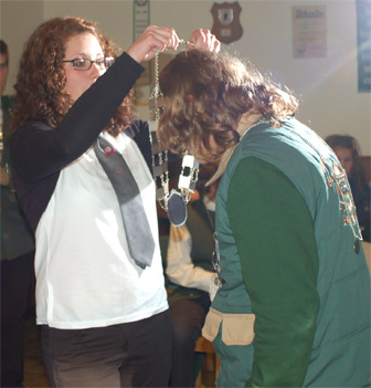 | Celina Wiedemeyer übergibt Karsten Krumpen die Bezirksschülerprinzenkette. |