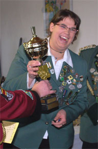 Die diesjährige Bezirksprinzessin schoß 24 von 30 möglichen Ringen stehend Freihand, kommt aus Nettersheim, ist 23 Jahre alt und heißt Susanne Eßer. Zweite wurde Celina Wiedemeyer aus Gemünd mit ebenfalls 24 Ringen aber dem schlechteren Schußbild und dritte Sabrina Ley aus Keldenich mit 18 Ringen. Somit stehen die Bezirksprinzenmajestäten fest, die uns in dieses Jahr beim DJT in Eschweiler vertreten werden.Dort haben sie die Möglichkeit, sich für die Teilnahme am Bundesprinzenschießen beim BJT in Gemünd zu qualifizieren. |